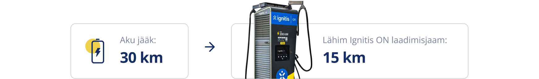 Paljud elektriautod annavad laadimisvajadusest märku siis, kui akust piisab veel umbes 30 km läbimiseks. See vahemaa sai peamiseks kriteeriumiks, kui arvutasime Ignitis ON võrgu katvust Eesti, Läti ja Leedu territooriumist.
